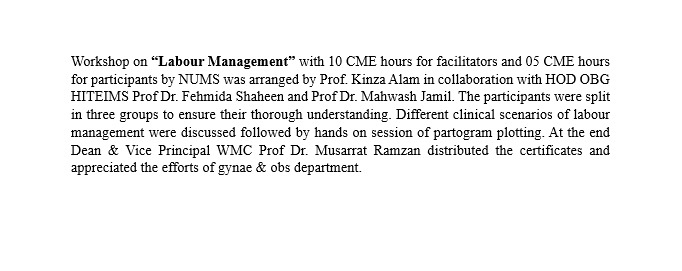 Workshop on fistula prevention and awareness held at izzat ali shah hospital