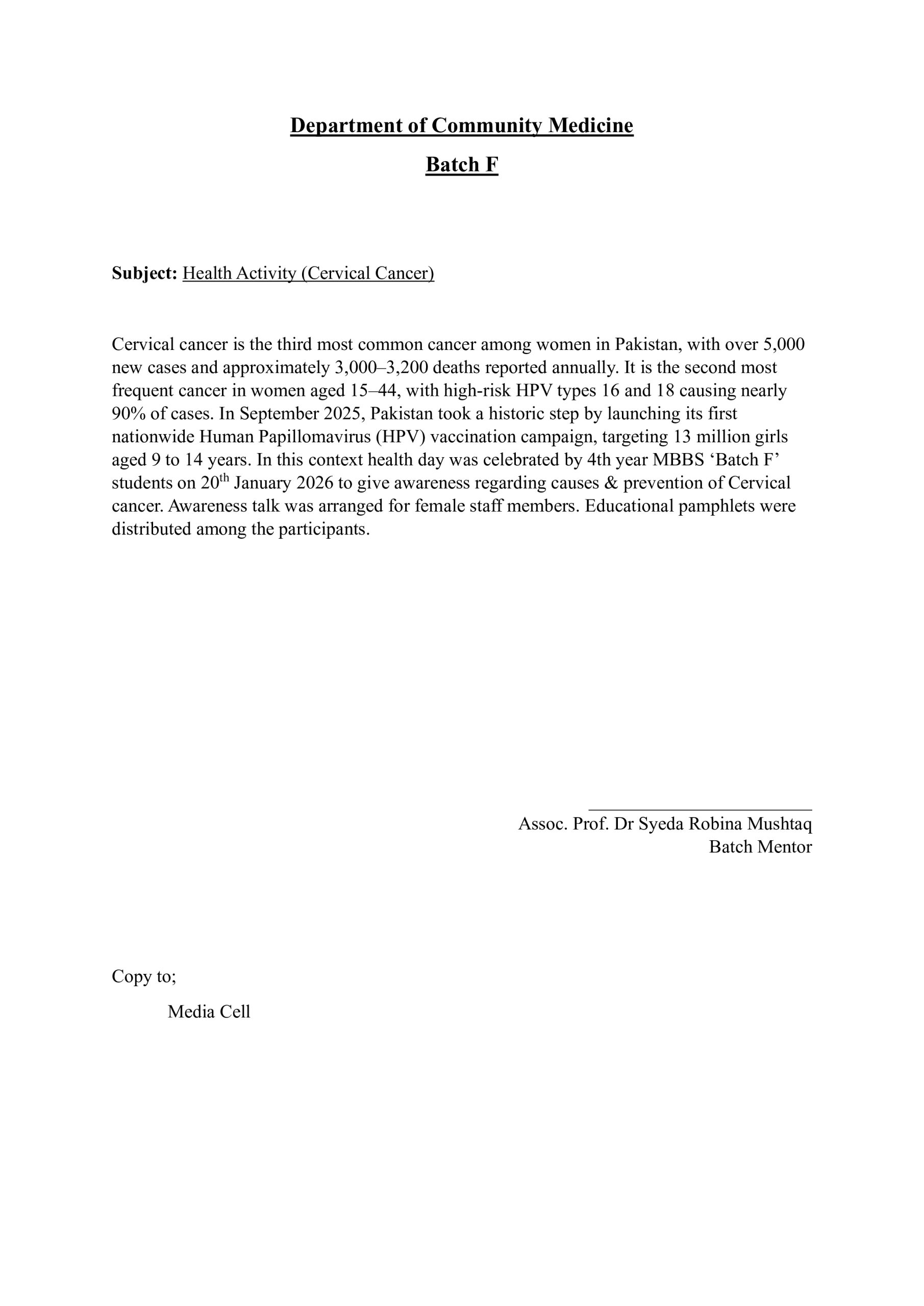 Cervical Cancer Day 20-01-2026